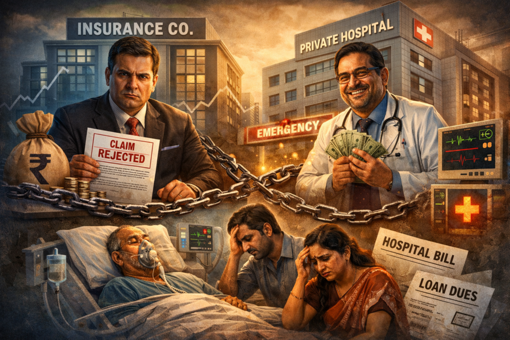 Medical insurance was created to protect families from financial disaster during health emergencies. For millions of Indians, it is supposed to be a safety net that ensures treatment without fear of losing life savings. Yet across the country, that promise is quietly collapsing. Patients, especially from the middle class, are increasingly finding themselves trapped between powerful insurance companies and large private hospitals, with no one truly on their side.